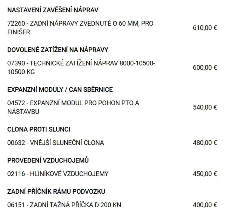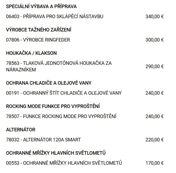 Přehled výbavy